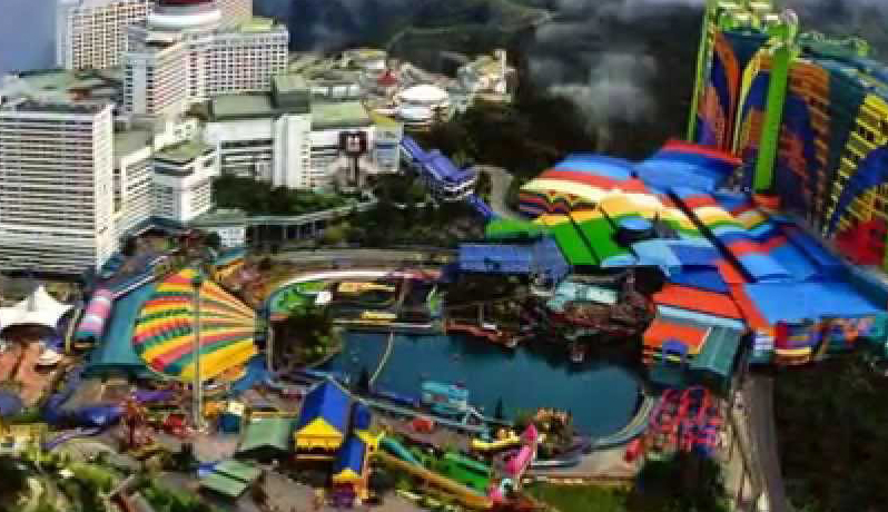 Known as the "Fun City Above the Cloud", Genting Highlands is the only legal land-based casino, Casino de Genting, in the country and is owned by Genting Malaysia Berhad, a subsidiary of Genting Group. The resort has three theme parks which are Genting Outdoor Theme Park, First World Indoor Theme Park and Water Park. It is accessible by car from Kuala Lumpur in one hour, or also accessible by a cable car called Genting Skyway (3.38 km) which at its opening used to be the world's fastest and South East Asia's longest gondola lift.
