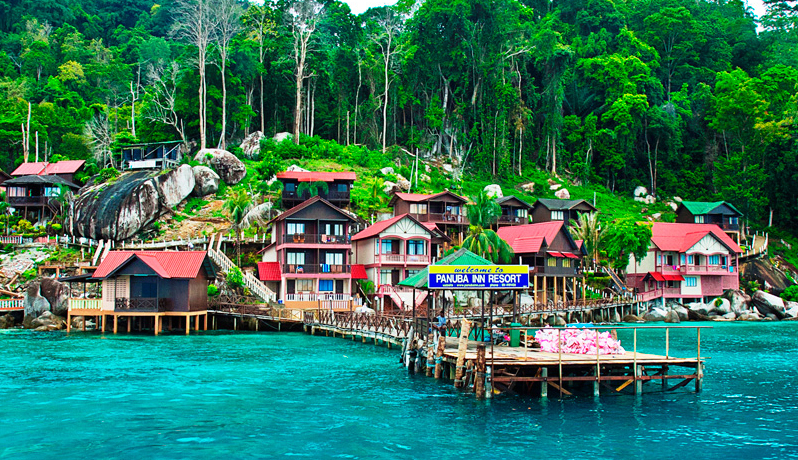 Like a giant sleeping dragon, the dark green ridges of Tioman Island rise up above the waters of the South China Sea. On closer inspection, it becomes clear that the dragon's dark green scales are in fact giant trees and impenetrable jungle; that the grey claws are giant granite boulders and that the dragon's horns are twin peaks with smooth, straight cliffs, surrounded with swirls of mist. The natural beauty of the island is its biggest attraction. Lush tropical jungle covers about 12,000 hectares of the island and countless mountain streams and waterfalls sustain the many protected species of mammals and birds. Tioman has options for every kind of holiday-maker: families with small children, honeymooners, scuba divers, backpackers, adventurers and even those looking for a slice of exclusivity and luxury.